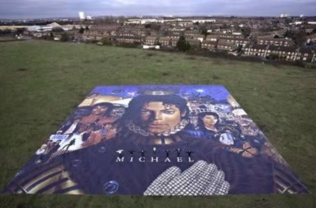 2.700 metri quadrati per il più grande poster al mondo dedicato a Michael Jackson. E’ stato creato in un campo vicino all’aeroporto di Heathrow, Londra.