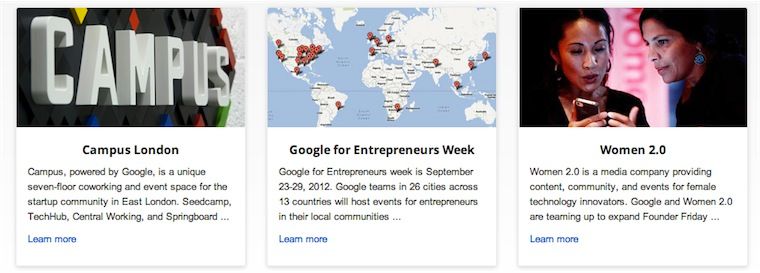 Mary Grove, capo del comparto Global Entrepreneurship Outreach, ha spiegato che il lavoro di Google si concentrerà su tre aree differenti: “Partnership con le organizzazioni che aiutano gli imprenditori nelle comunità locali, accesso a strumenti utili per lo sviluppo ed a risorse di approfondimento. Il sito è stato progettato per rappresentare un indice di questo tipo di risorse”.