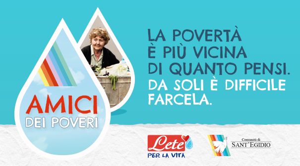 progetti sociali: ultima, “on air” in queste settimane, la campagna pubblicitaria a favore della comunità di Sant’Egidio. La comunicazione punta sull’immagine di una donna dai capelli grigi e scompigliati, intenta a rovistare in un cassonetto della spazzatura. Il testo: “La povertà è più vicina di quanto pensi”, suona come un richiamo ad essere più sensibili alle condizioni di chi soffre non distante da noi: perché oggi l’indigenza non è confinata a lontani continenti ma si nasconde (forse non più di tanto) negli angoli ciechi della nostra visuale.