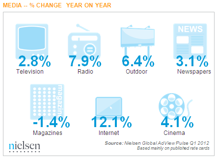 A dirlo è l’ultimo rapporto Nielsen sul mercato pubblicitario mondiale, dal quale è emersa una crescita diffusa degli investimenti nel settore durante la prima parte del 2012. Una crescita che ha riguardato tutti gli ambiti della comunicazione, sia quella online che quella offline, con Internet che ha fatto registrare la mole maggiore d’investimenti e dunque il salto in avanti più significativo.