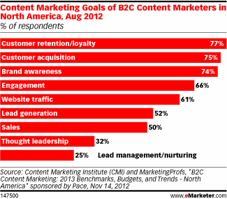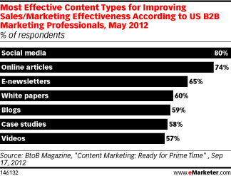 L’ultima, forse anche la più significativa, è targata Content Marketing Institute (CMI) ed è stata ripresa da eMarketer nei giorni scorsi. Tutto chiaro, anche nel 2013: Content is King. Comandano i contenuti. Non solo testuali e chiaramente non solo di natura editoriale, bensì sviluppati su più fronti: social media, articoli, newsletter, blog e quant’altro. Contenuti sì, ma a 360°.